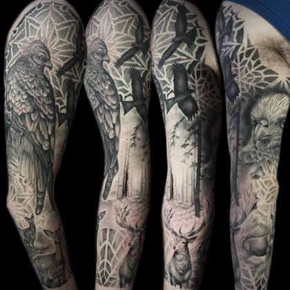A dreamlike piece by Sam Barber. Via Instagram sambarbertattoo #sambarber #surrealism #realism #portrait #horror #macabre #dancing #ballet #clownsWolf and forest Tattoo by Yomico #Yomico #hyperrealism #realism #realistic #wolf #animal #forestMandalas and forest animals sleeve Tattoo by Yomico #Yomico #hyperrealism #realism #realistic #wolf #animal #forest #family Lone wolf by Jamie Mahood #JamieMahood #realism #realistic #hyperrealism #blackandgrey #wolf #animal #dog #coyote #forest #nature #tattoooftheday#Onlythebesttattooart #tattoo #ink #cristianrodrigueztattoos #blackandgrey #realism #surrealism #dotwork #ornamental #tribal #gemetric #colortattoo #fuerteventura #demon #diablo #forest #fire