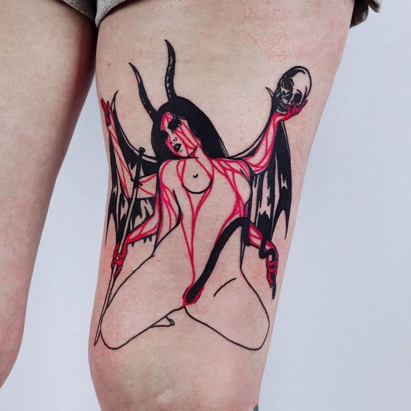Tattoo by Rob Borbas #RobBorbas #redinktattoos #redink #color #darkart #blood #demon #death #devil